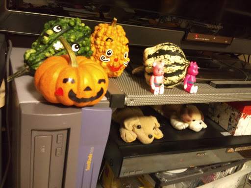 そうしたら、ステキなカボチャが並んでるじゃありませんか。可愛い柄のカボチャをチョイスして、自宅に飾ってみました。