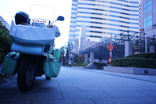 都会でもヤクルトのスクーターがあるのか。驚き。