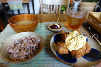 - 席数は少ないけど、ゆっくりくつろげるカフェ。人気はチキン南蛮。ランチはフリードリンクで950円ほどになるのでお得です。